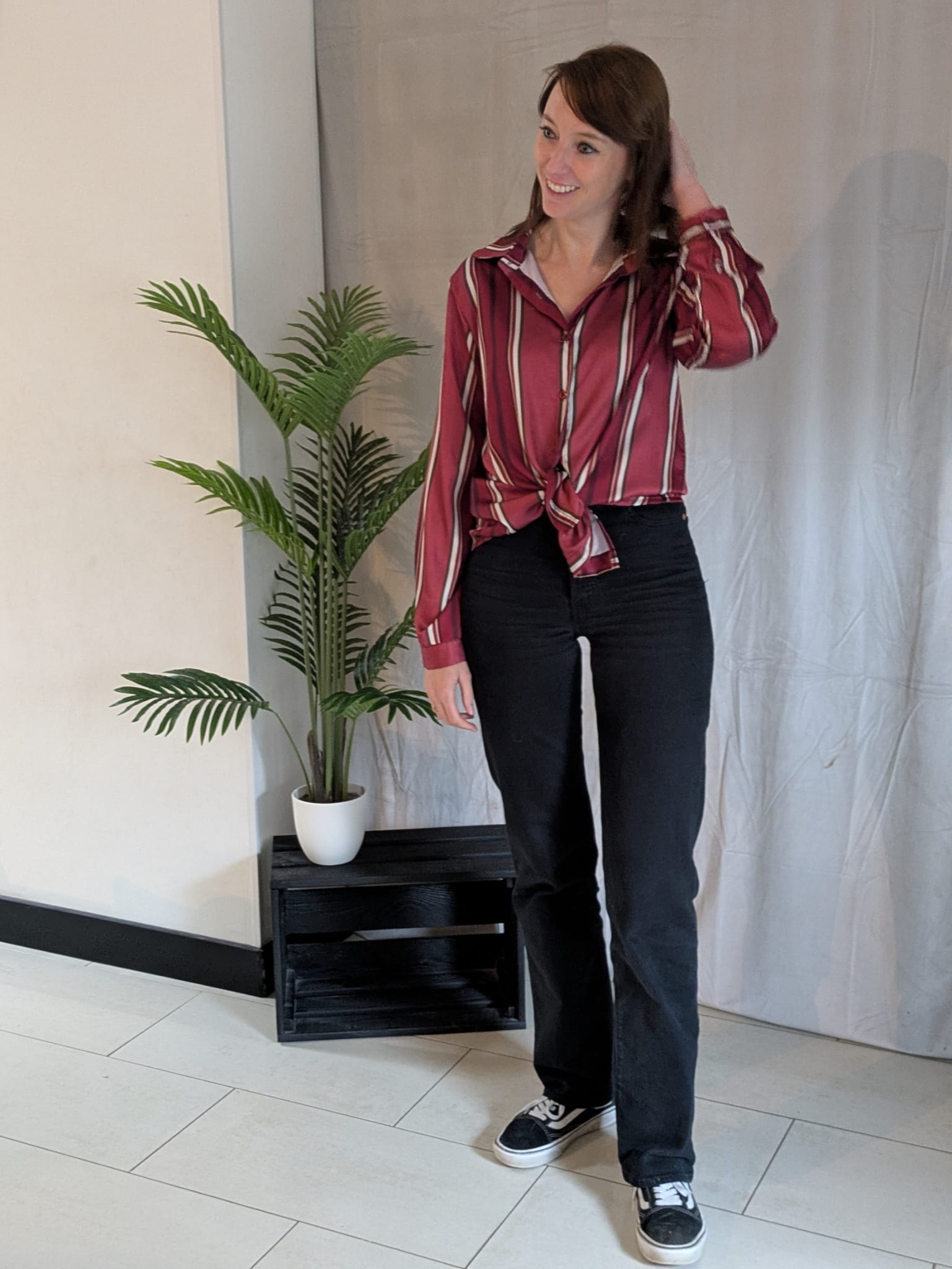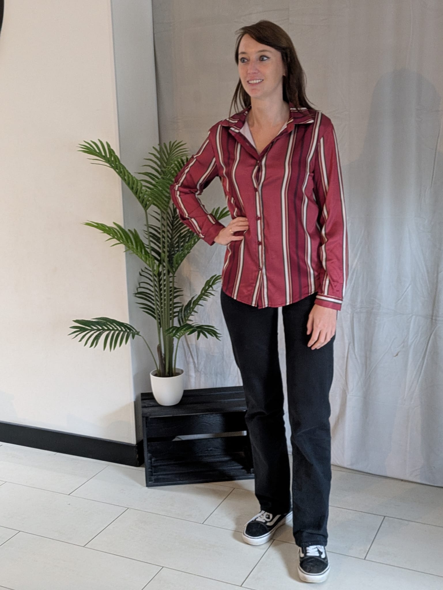 Donkerblauwe/bordeaux hemdblouse met mooie strepen