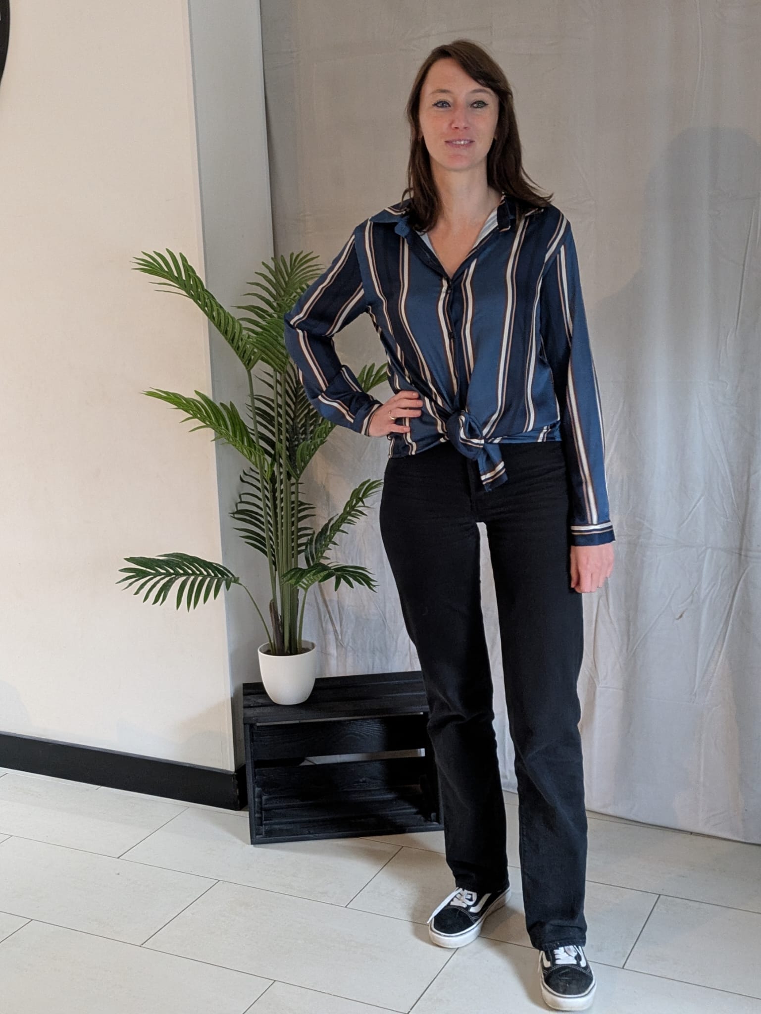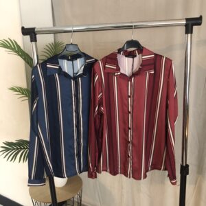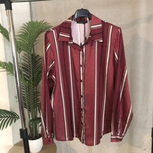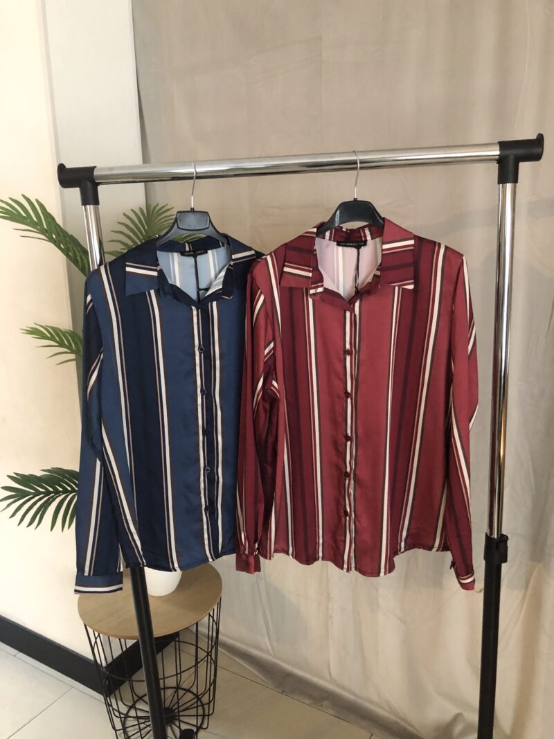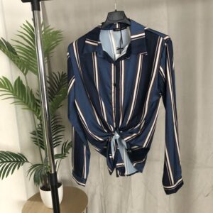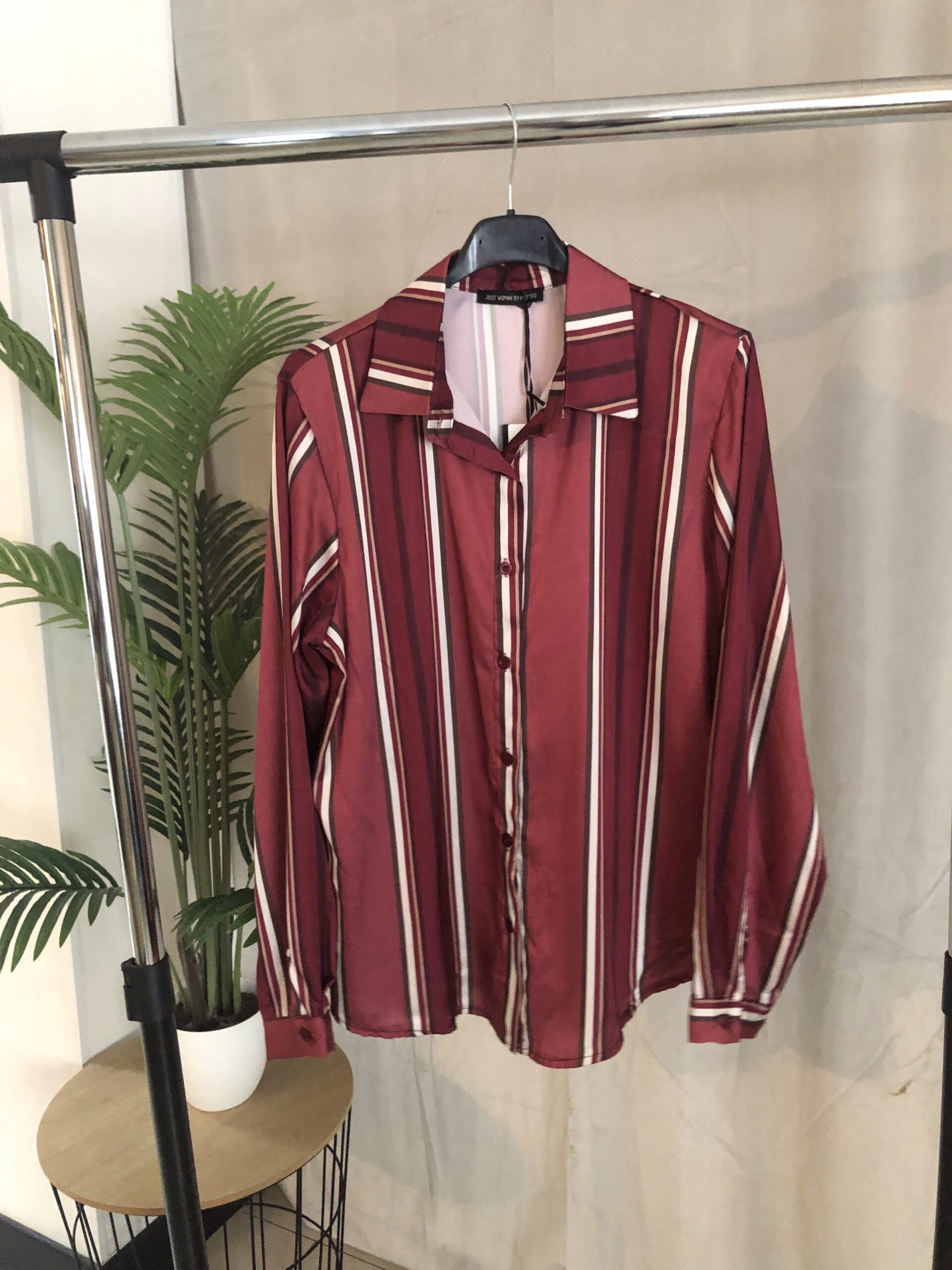Deze donkerblauwe/bordeaux hemdblouse met strepen combineert klassieke elegantie met een moderne touch. Dankzij de klassieke knoopsluiting kan de blouse zowel volledig dicht gedragen worden maar ook nonchalant opgeknoopt voor een casual en trendy look.