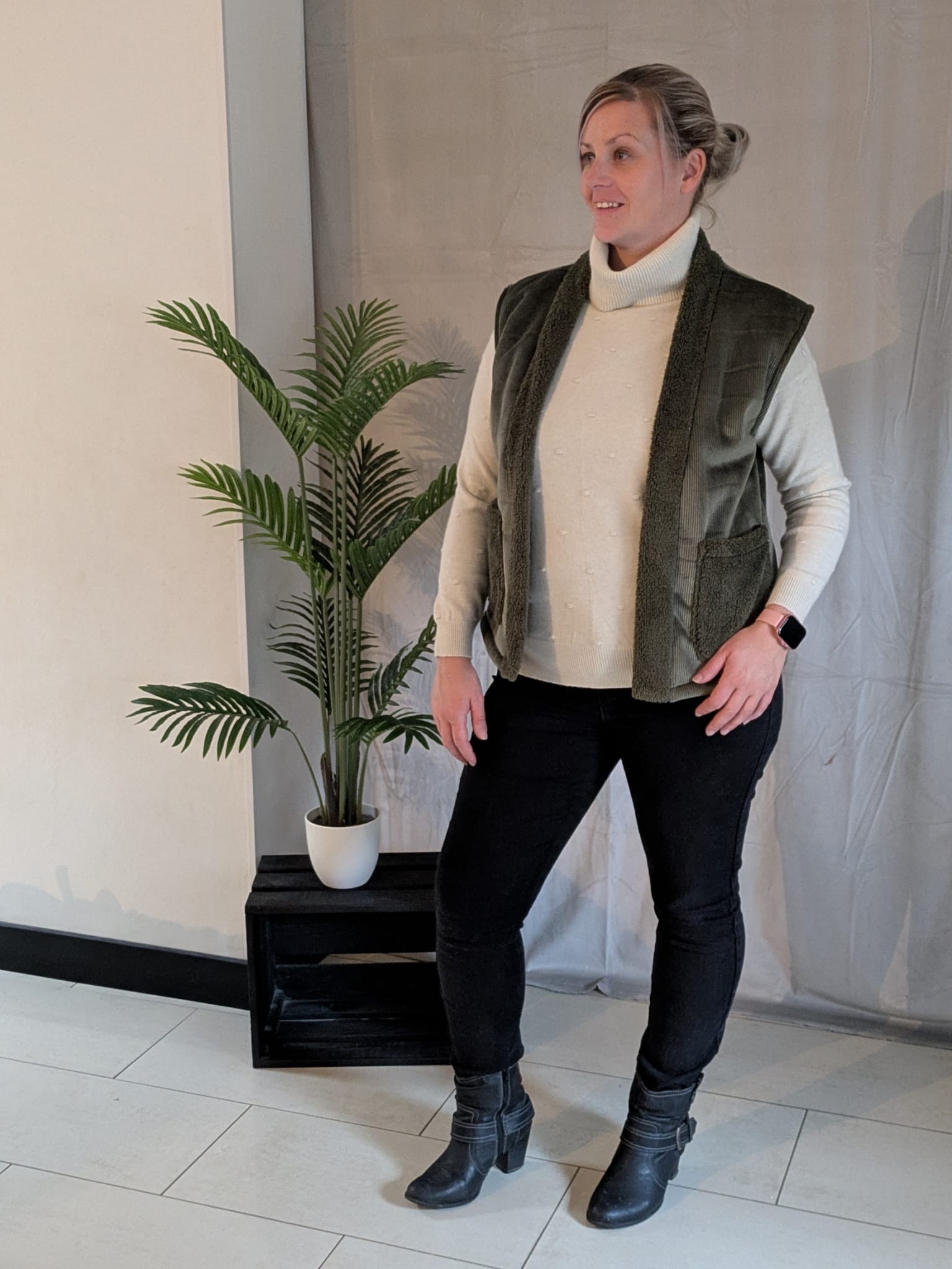 Mooi combineerbaar met onze leuke, warme groene vest zonder mouwen.