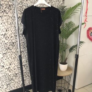 Zwart T-shirt kleedje met glitters en split