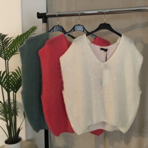De zachte pluizige stof voelt heerlijk warm en cosy aan, terwijl de mouwloze snit zorgt voor een trendy en veelzijdige look. Ideaal om te dragen over een blouse, trui of longsleeve.