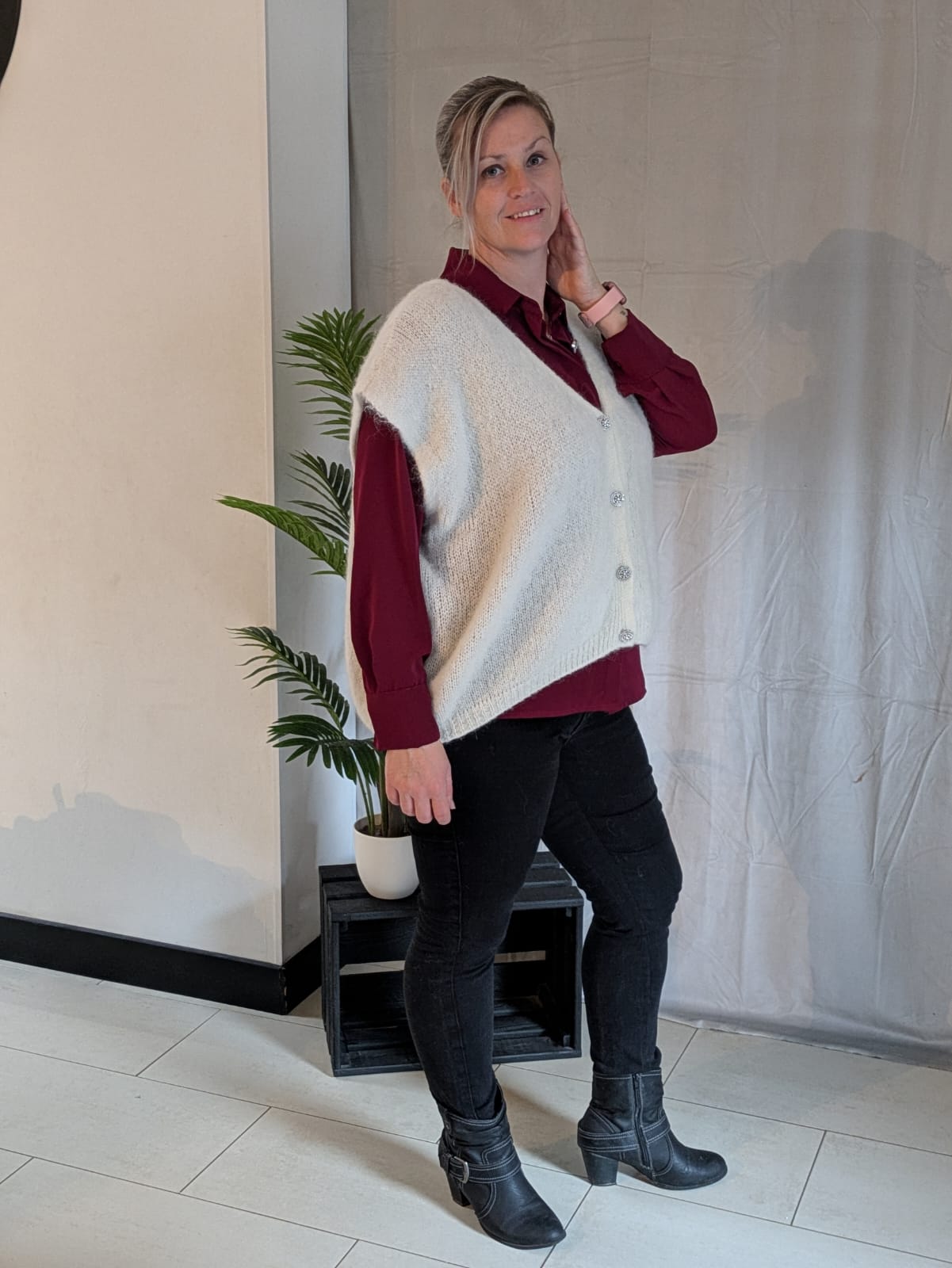 Omarm ultiem comfort en stijl met ons witte fluffy vest. Het heeft een casual, oversized pasvorm en kan moeiteloos gecombineerd worden.
